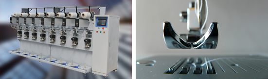 該設(shè)備結(jié)構(gòu)簡(jiǎn)潔、堅(jiān)固、造型輕靈、美觀(guān)大方,其卷繞速度高達(dá)1000m/min,采用精準(zhǔn)的伺服控制系統(tǒng),主動(dòng)送紗、在線(xiàn)張力控制,達(dá)到送紗與卷繞的精準(zhǔn)配合,設(shè)定卷繞交叉角,將導(dǎo)絲排線(xiàn)與卷繞任意調(diào)整速比, 以保證成筒的各種工藝要求。